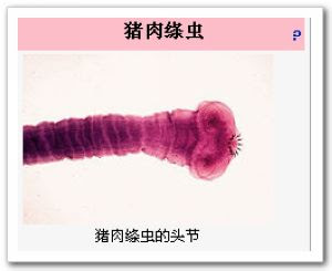 豬肉絛蟲(Taenia solium)也稱「有鉤絛蟲」,體長2-3米,寬7-8毫米,共有800-900個節片,後端成熟節片長約10毫米。